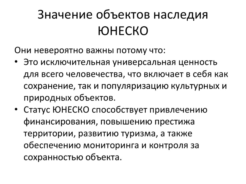 Значение объектов наследияЮНЕСКО