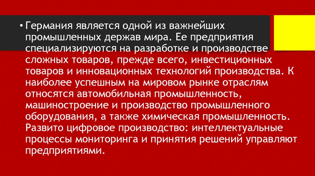• Германия является одной из важнейшихпромышленных держав мира. Ее предприятия