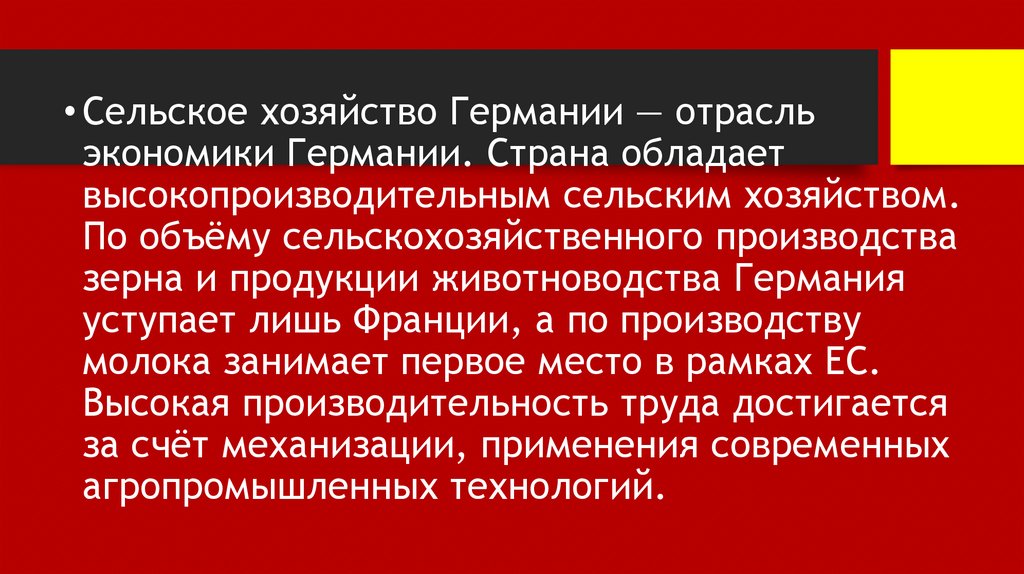 • Сельское хозяйство Германии — отрасльэкономики Германии. Страна обладает