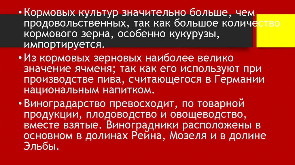 • Кормовых культур значительно больше, чемпродовольственных, так как большое количество