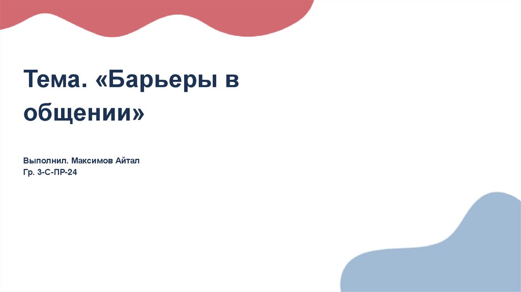 Тема. «Барьеры вобщении»