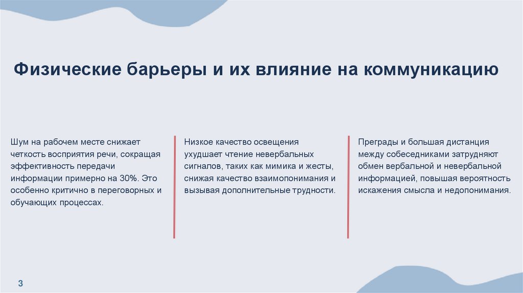 Физические барьеры и их влияние на коммуникациюШум на рабочем месте снижает