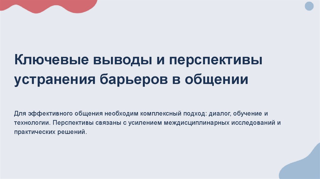 Ключевые выводы и перспективыустранения барьеров в общении