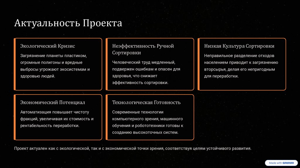 Проект актуален как с экологической, так и с экономической точки зрения, соответствуя целям устойчивого развития.