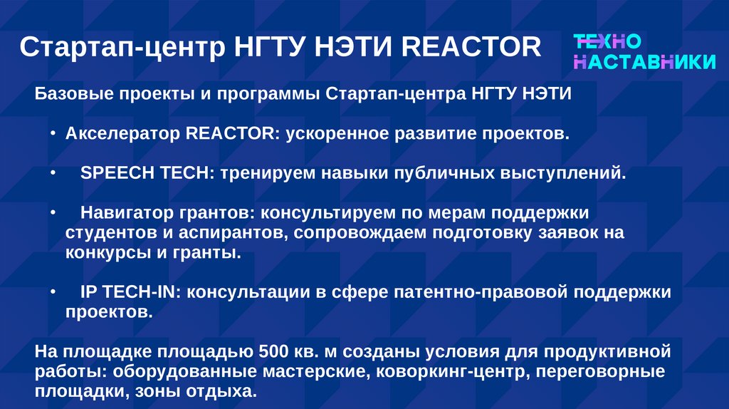 Стартап-центр НГТУ НЭТИ REACTORБазовые проекты и программы Стартап-центра НГТУ НЭТИ