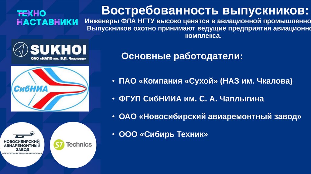 Востребованность выпускников:Инженеры ФЛА НГТУ высоко ценятся в авиационной промышленнос