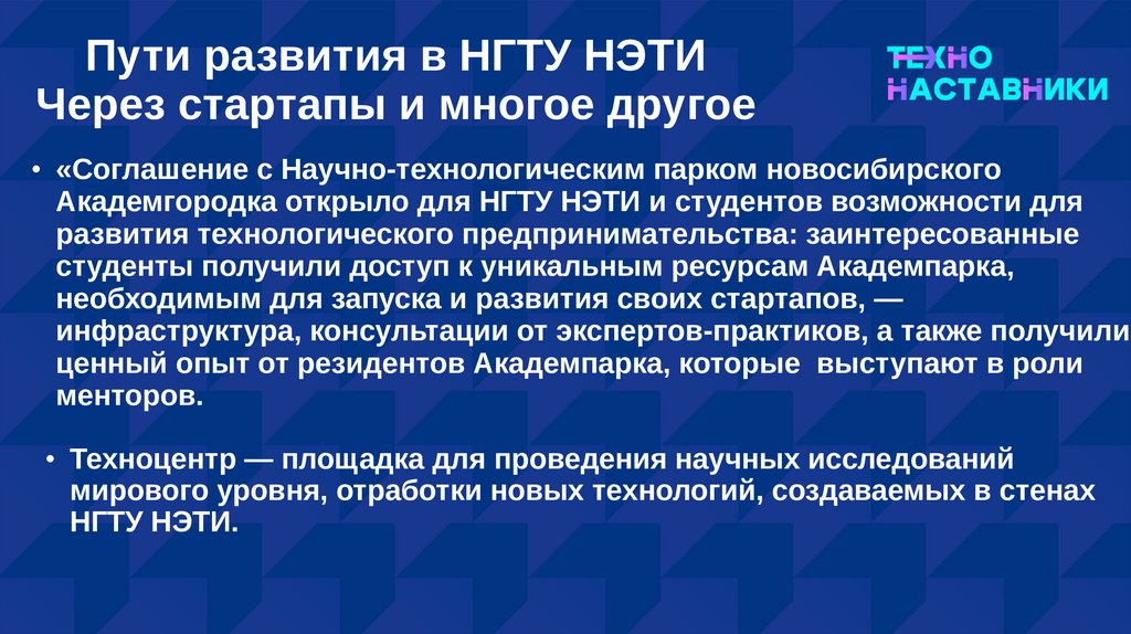 Пути развития в НГТУ НЭТИЧерез стартапы и многое другое