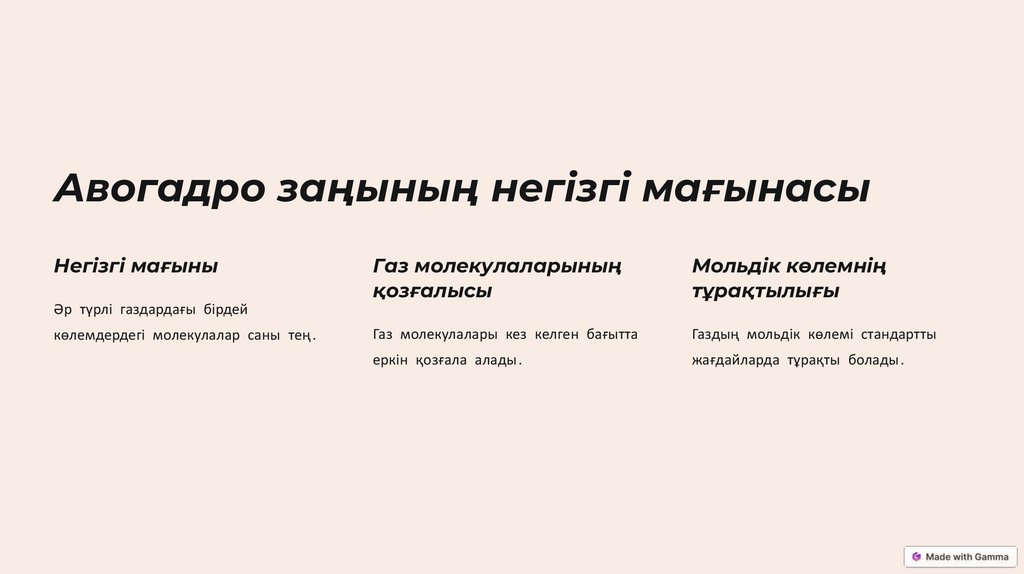 Авогадро заңының негізгі мағынасыНегізгі мағыны