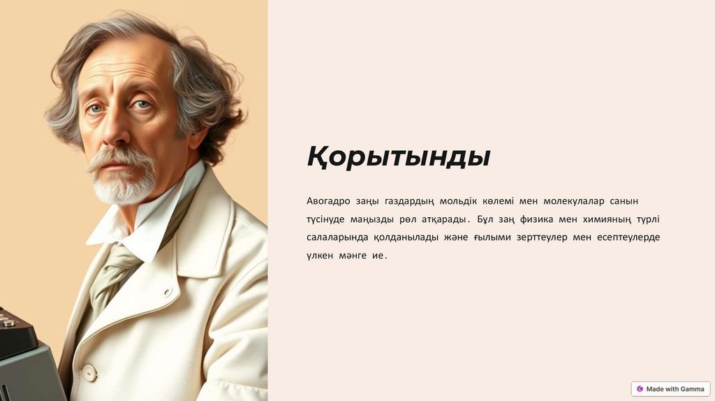 ҚорытындыАвогадро заңы газдардың мольдік көлемі мен молекулалар санын