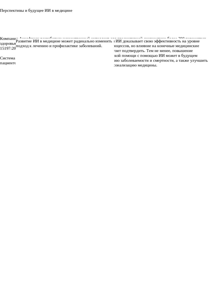 Перспективы и будущее ИИ в медицинеКомпания Аккофриск разработала искусственный интеллект для предиктивной диагностики более 300 параметров