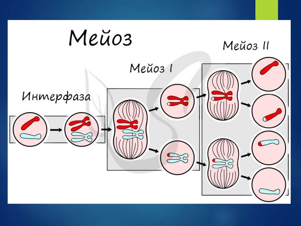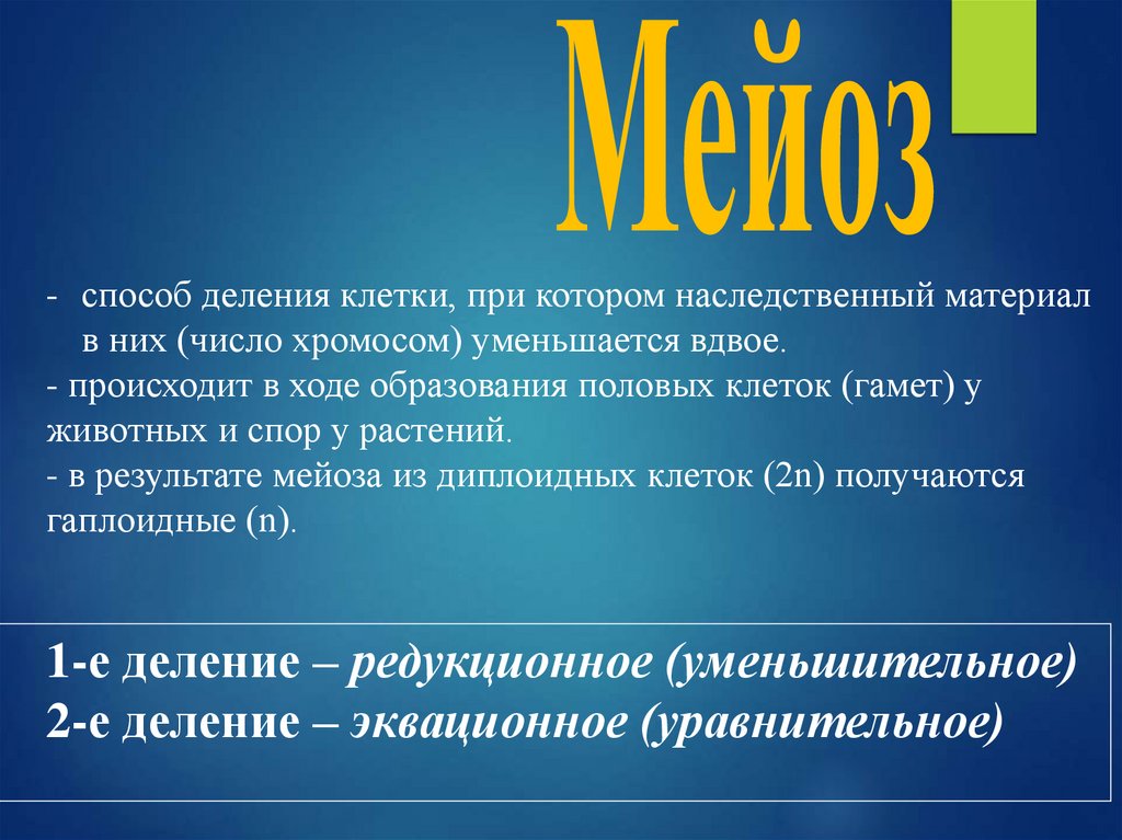 - способ деления клетки, при котором наследственный материалв них (число хромосом) уменьшается вдвое.