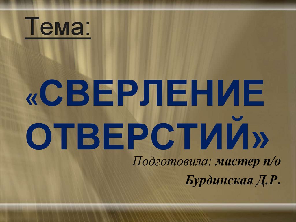 1. Тема: «СВЕРЛЕНИЕ ОТВЕРСТИЙ»