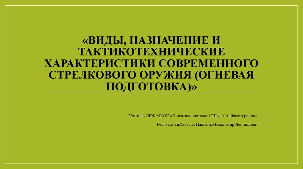 1. «Виды, назначение и тактикотехнические характеристики современного стрелкового оружия (огневая подготовка)»
