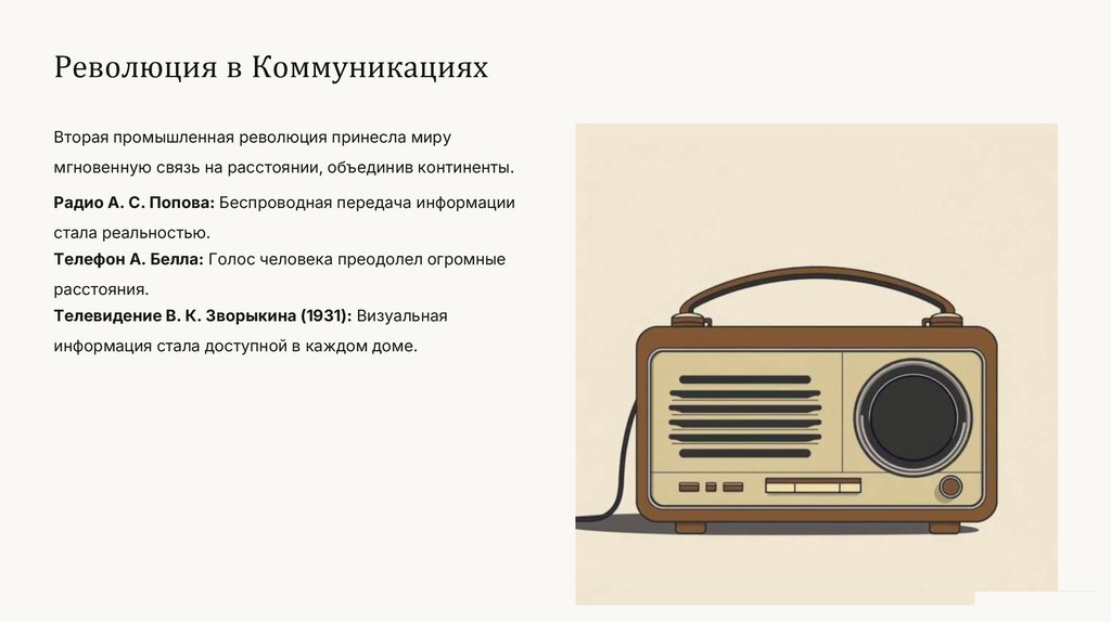 Революция в КоммуникацияхВторая промышленная революция принесла миру