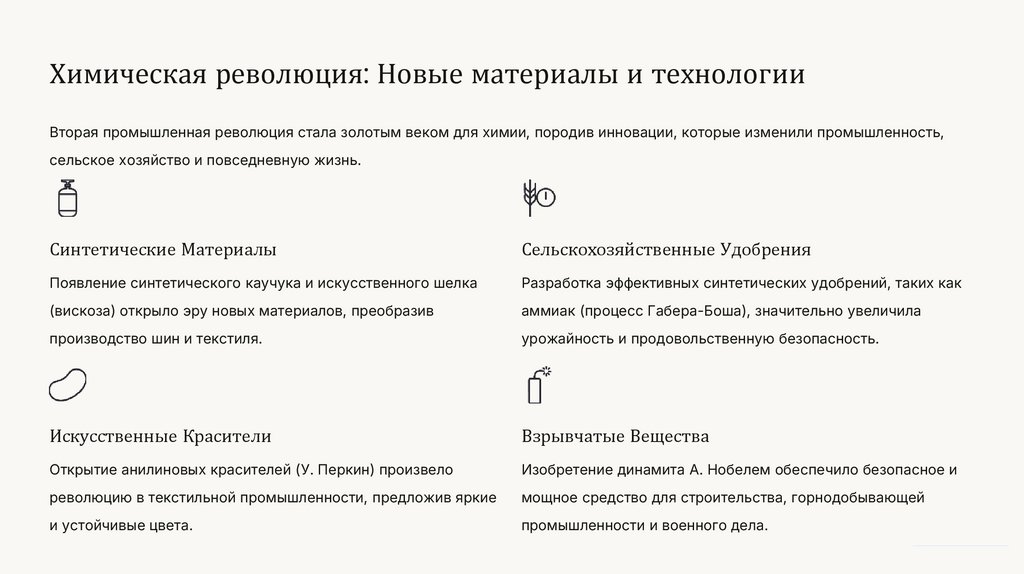Химическая революция: Новые материалы и технологииВторая промышленная революция стала золотым веком для химии, породив инновации, которые изменили промышленность,