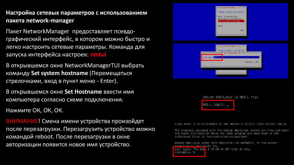 Пакет NetworkManager предоставляет псевдографический интерфейс, в котором можно быстро и