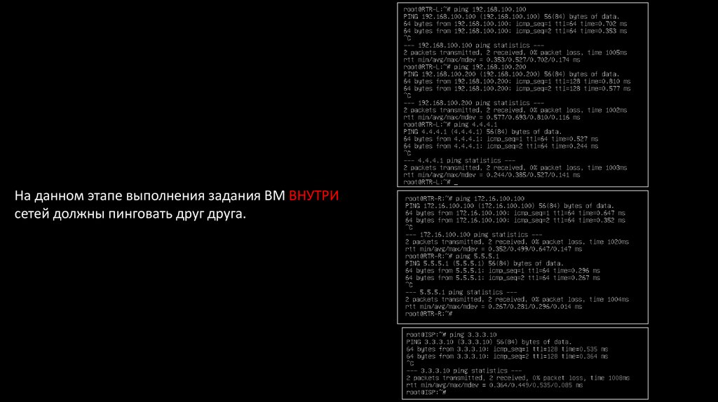 На данном этапе выполнения задания ВМ ВНУТРИсетей должны пинговать друг друга.