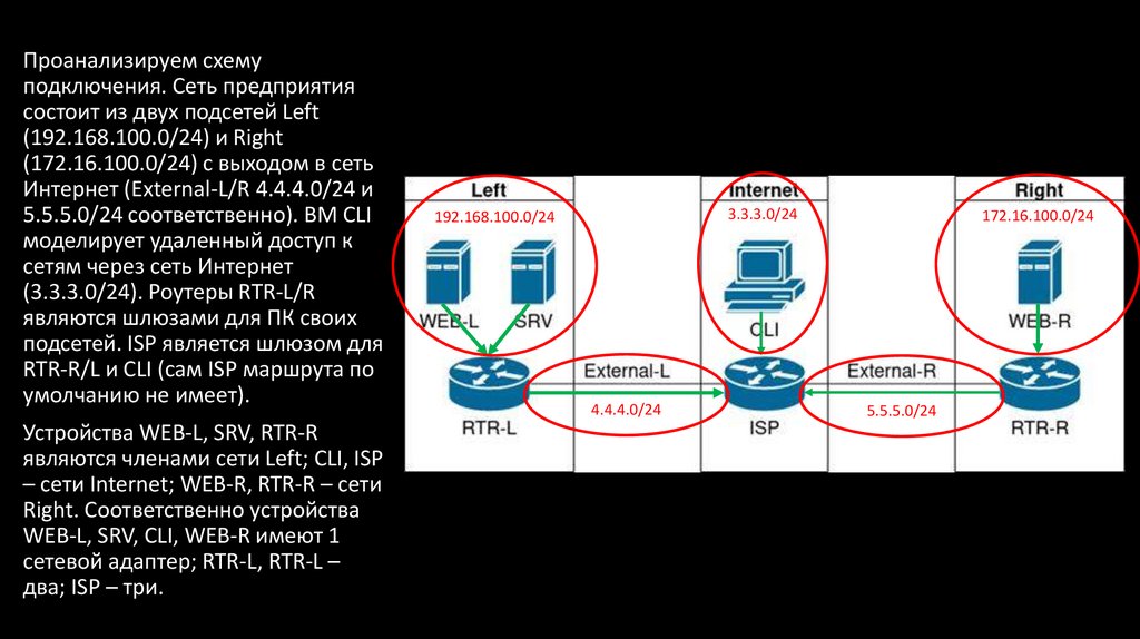 ВМ RTR-L, ISP и RTR-R имеют несколько сетевых