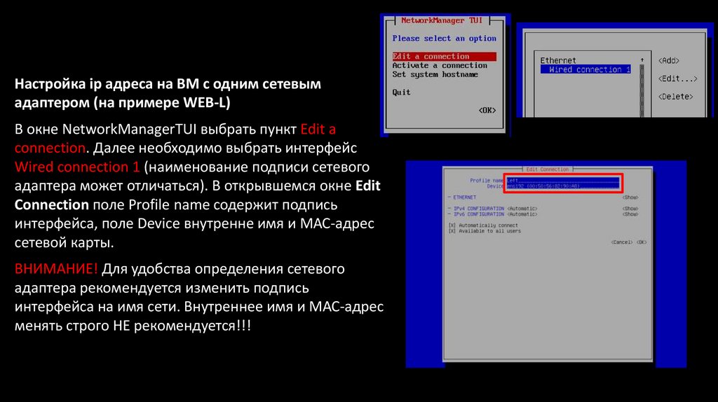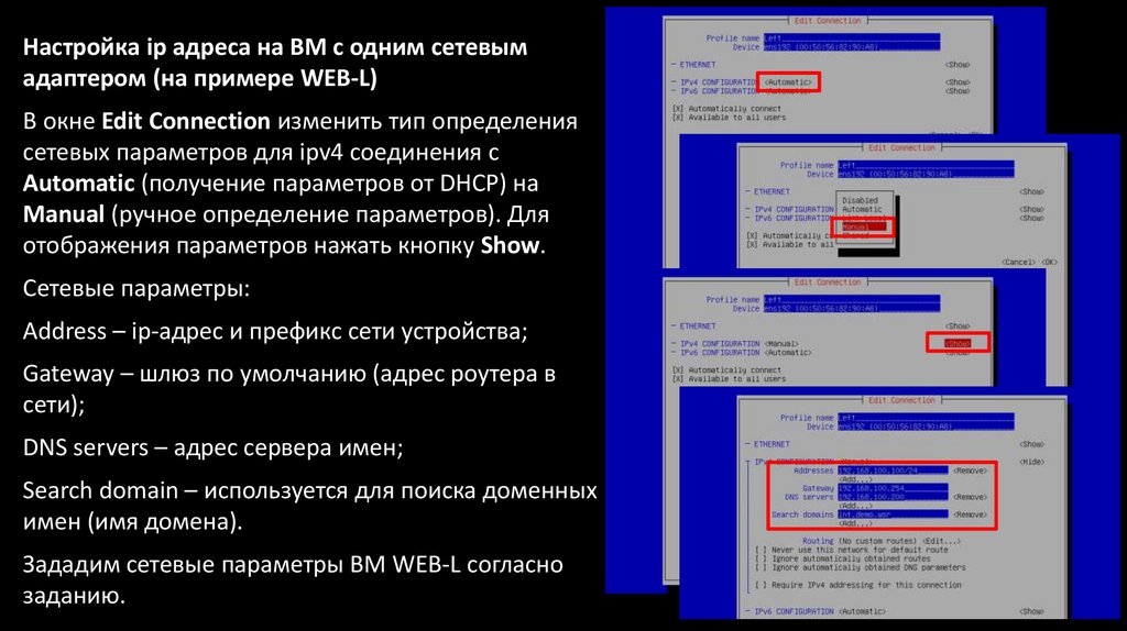 Настройка ip адреса на ВМ с одним сетевымадаптером (на примере WEB-L)