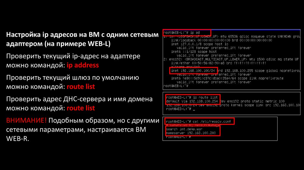 Настройка ip адресов на ВМ с одним сетевымадаптером (на примере WEB-L)