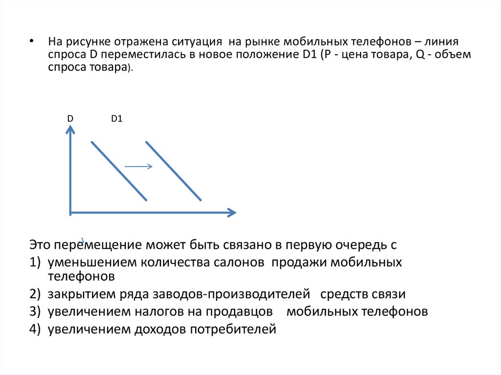 спроса D переместилась в новое положение D1 (Р - цена товара, Q - объем