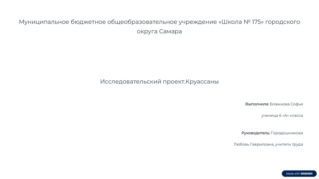 Муниципальное бюджетное общеобразовательное учреждение «Школа № 175» городскогоокруга Самара