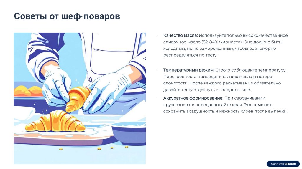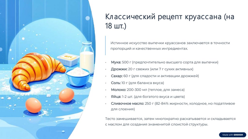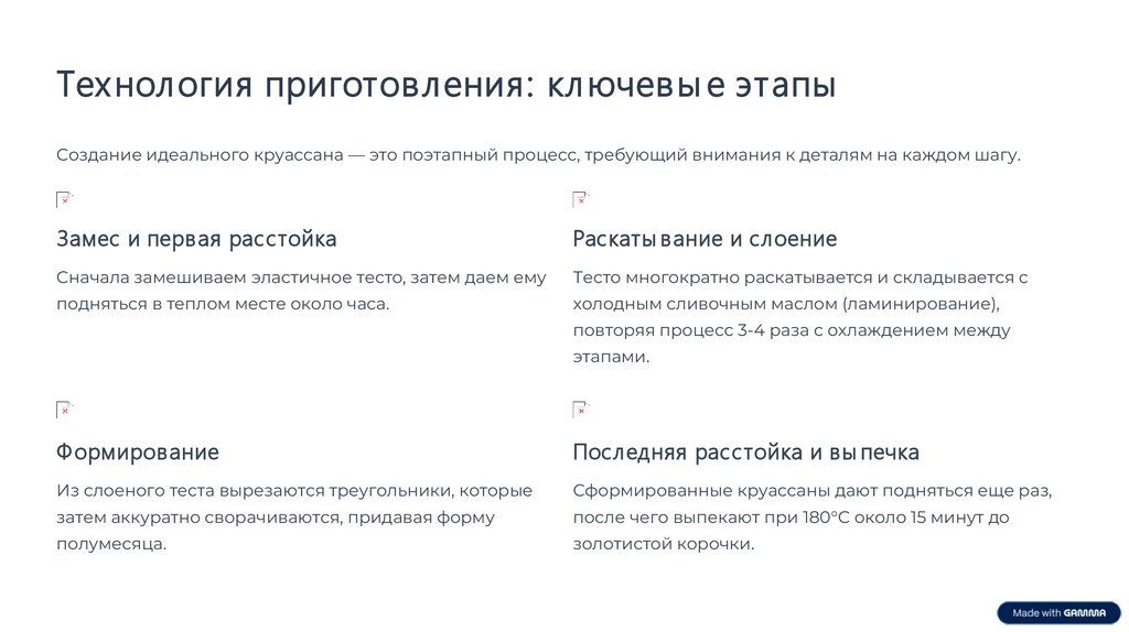 Тех нология приготовления: кл ючев ы е этапыСоздание идеального круассана — это поэтапный процесс, требующий внимания к деталям на каждом шагу.