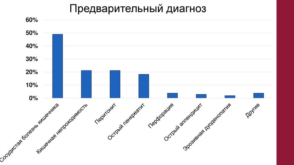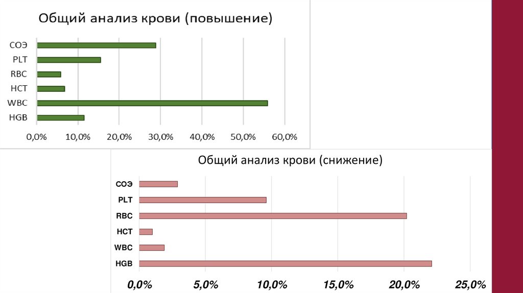 • Среди лабораторных диагнозов преобладают лейкоцитоз,