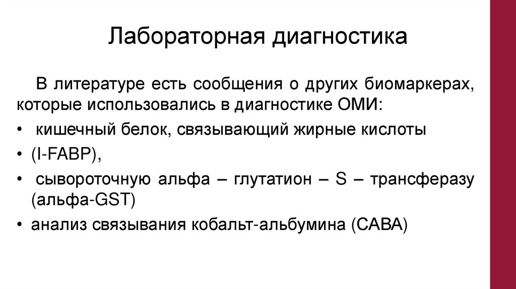 Лабораторная диагностикаВ литературе есть сообщения о других биомаркерах,