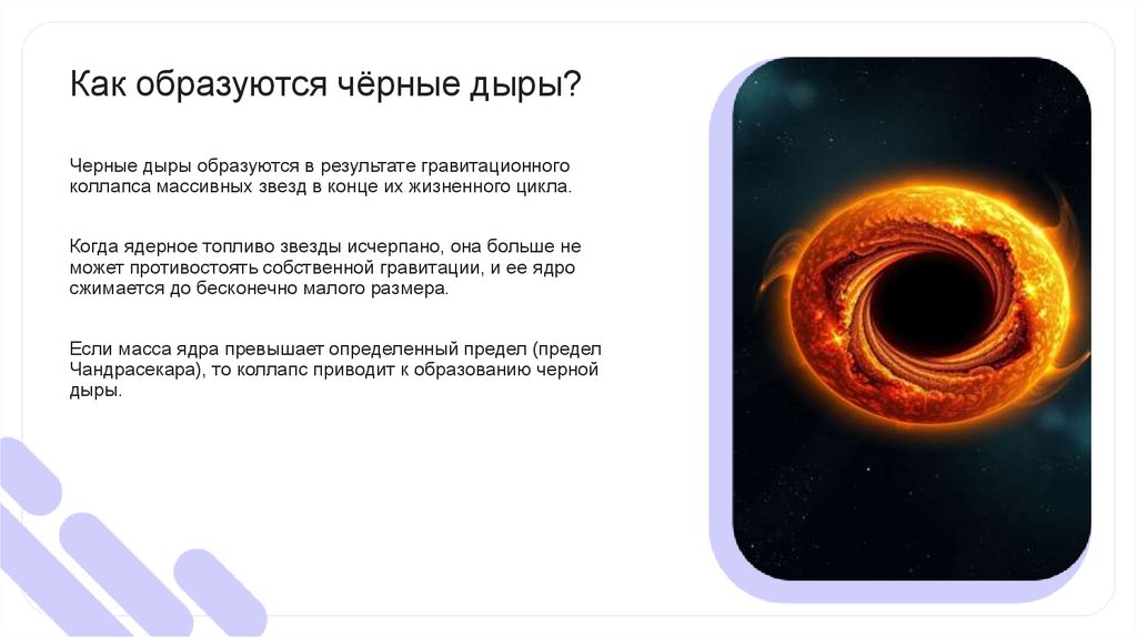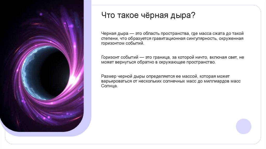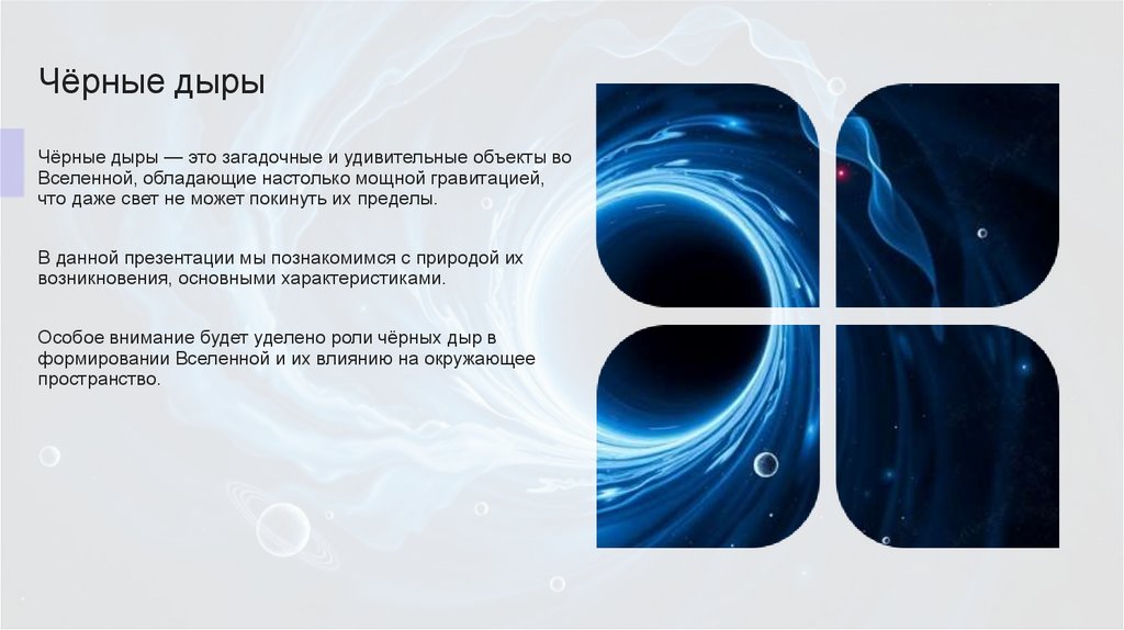 Чёрные дырыЧёрные дыры — это загадочные и удивительные объекты во