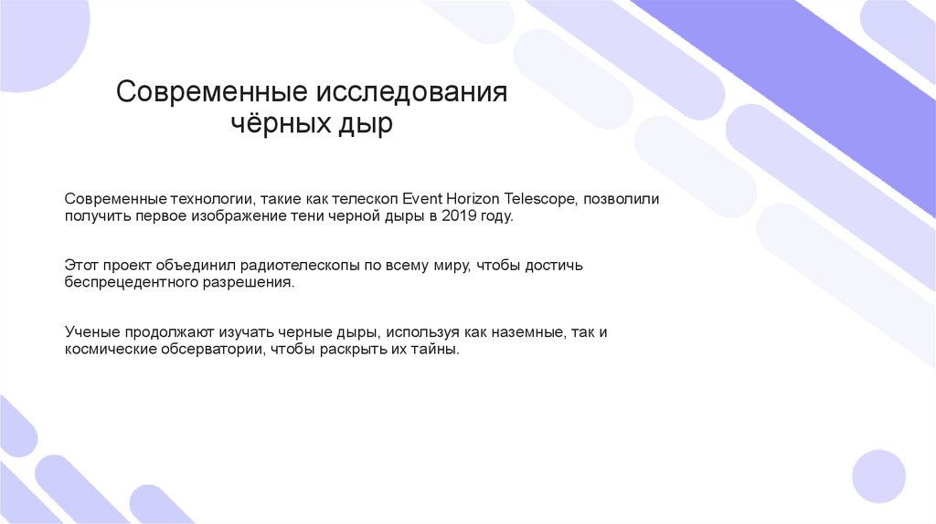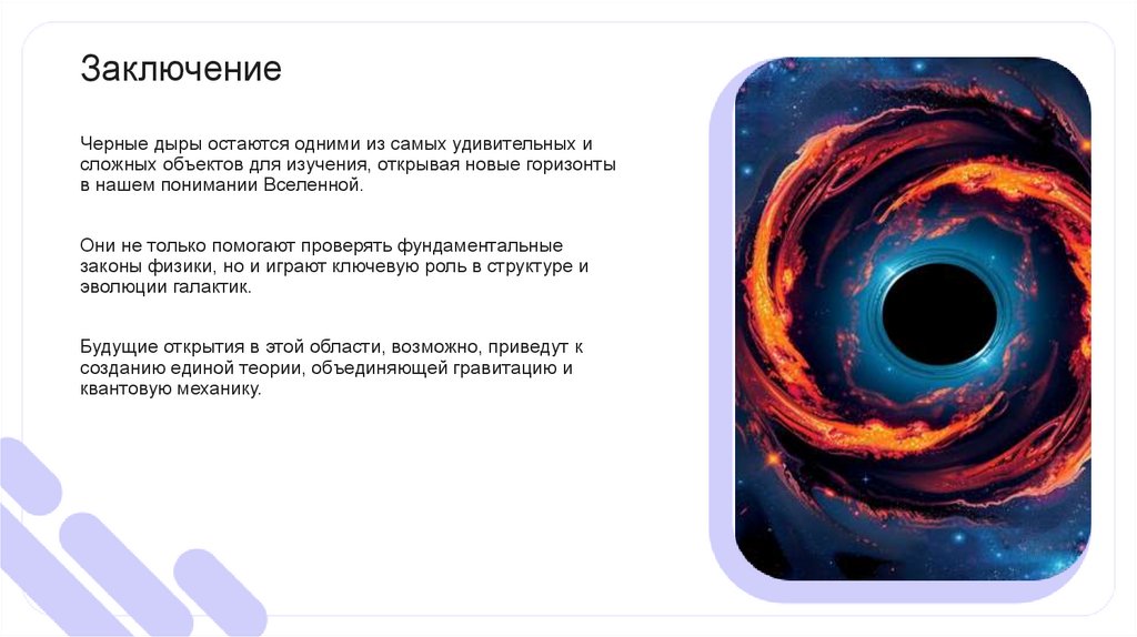 ЗаключениеЧерные дыры остаются одними из самых удивительных и