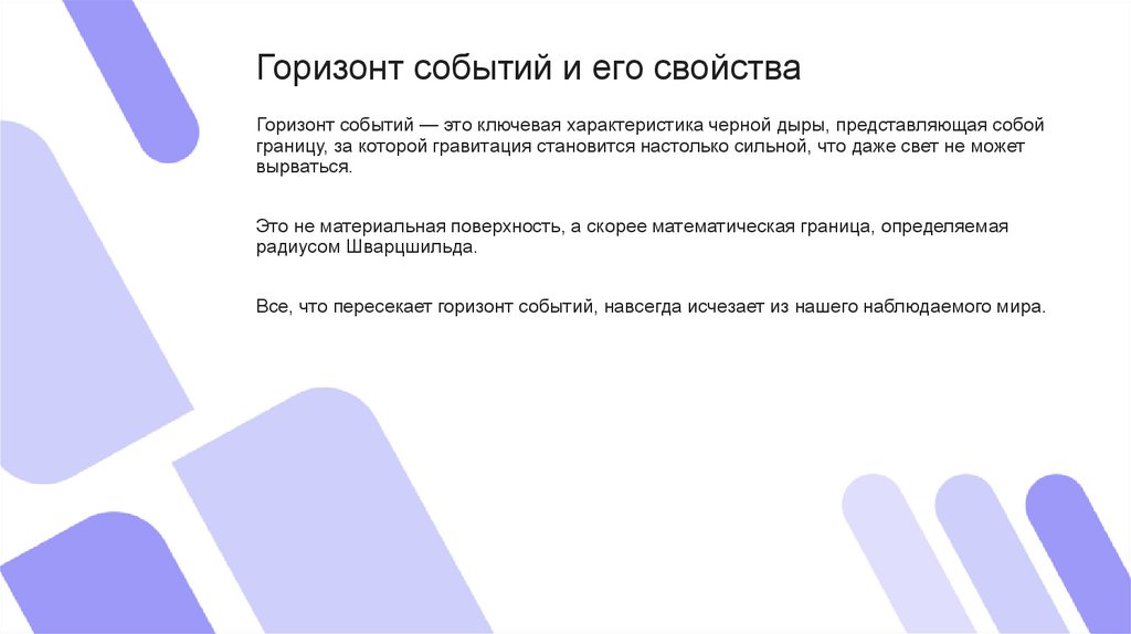 Горизонт событий и его свойстваГоризонт событий — это ключевая характеристика черной дыры, представляющая собой