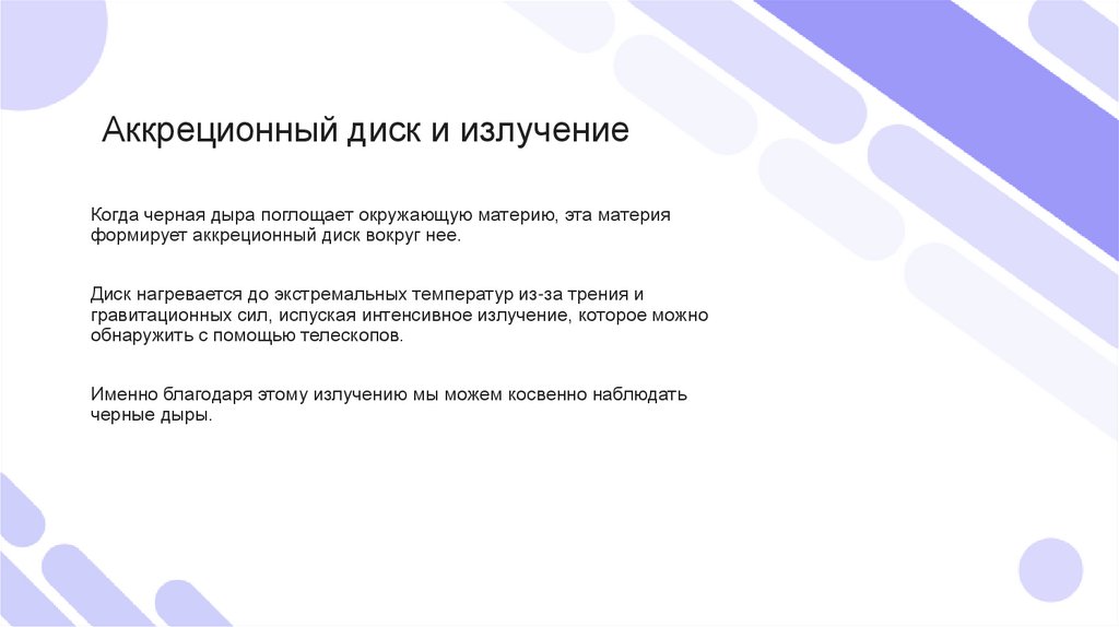 Аккреционный диск и излучениеКогда черная дыра поглощает окружающую материю, эта материя