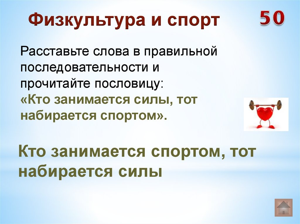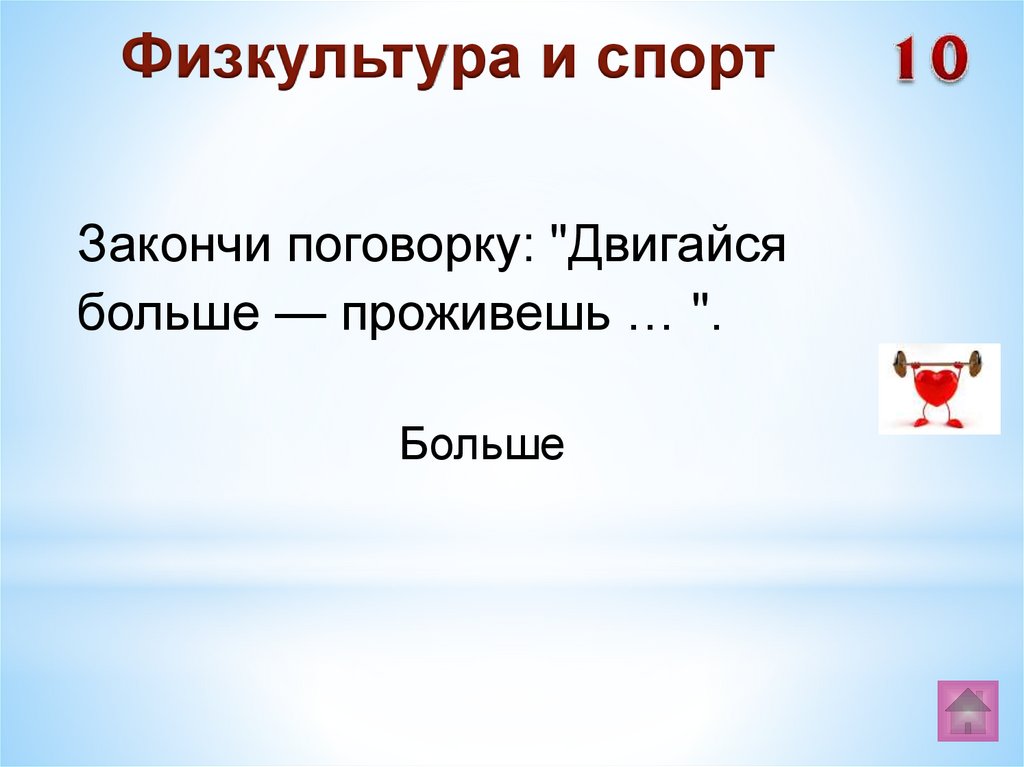 Физкультура и спортЗакончи поговорку: "Двигайся