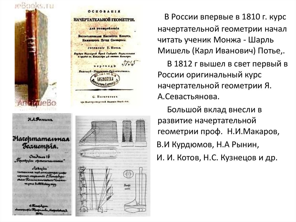 В России впервые в 1810 г. курсначертательной геометрии начал
