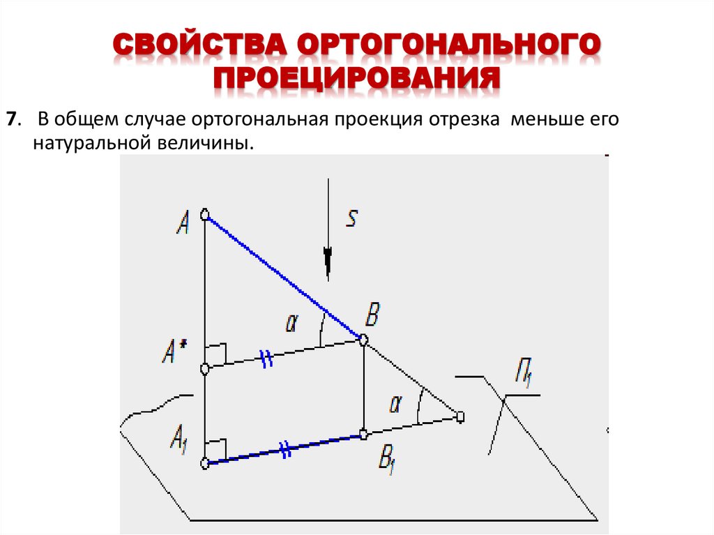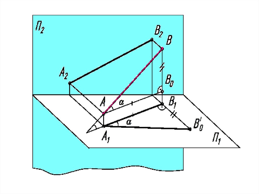AB - отрезок прямой в пространстве.A1B1 - горизонтальная проекция отрезка.