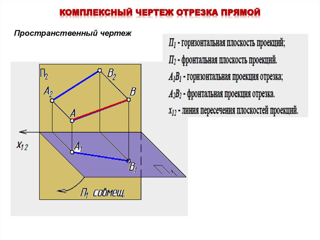 КОМПЛЕКСНЫЙ ЧЕРТЕЖ ОТРЕЗКА ПРЯМОЙПространственный чертеж