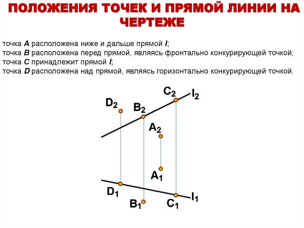 ПОЛОЖЕНИЯ ТОЧЕК И ПРЯМОЙ ЛИНИИ НАЧЕРТЕЖЕ