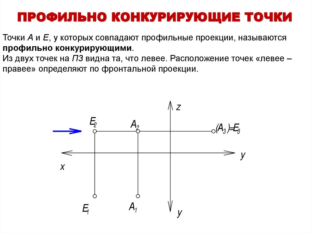 ПРОФИЛЬНО КОНКУРИРУЮЩИЕ ТОЧКИТочки А и Е, у которых совпадают профильные проекции, называются