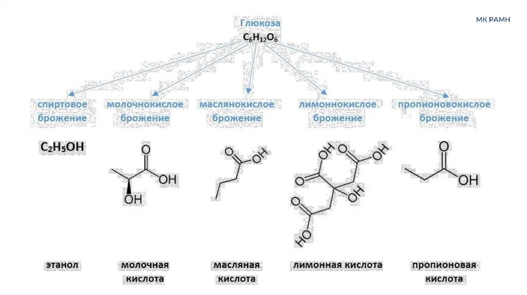 1) спиртовое (характерно для грибов);2) пропионово-кислое (характерно для клостридий);