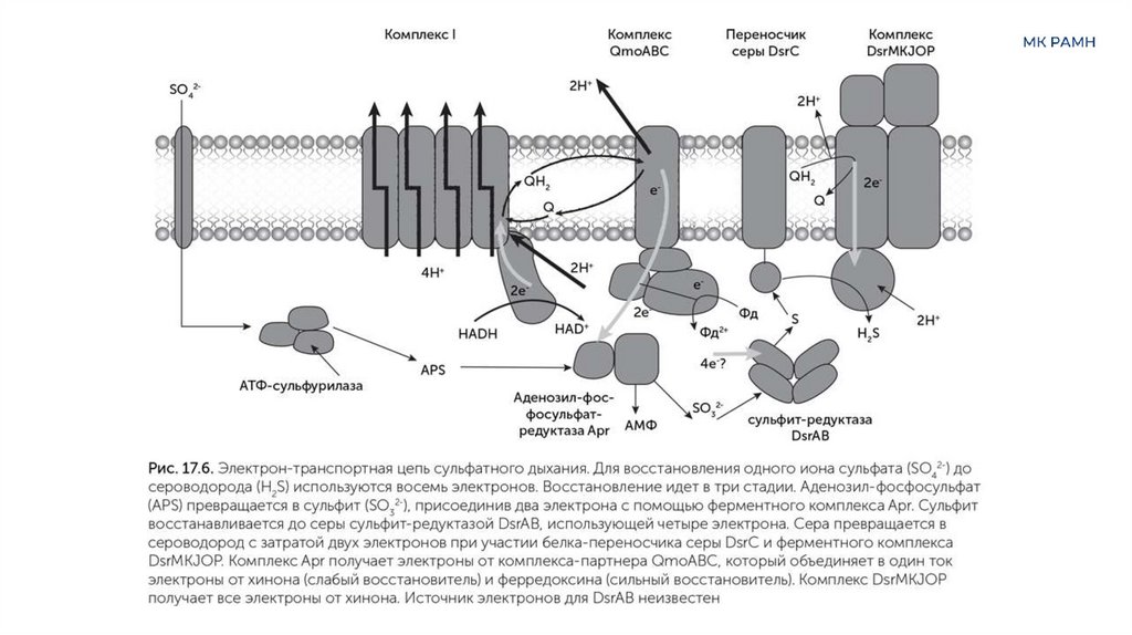 o Если акцептором электронов при дыхании служат неорганическиесоединения (сульфаты, нитраты, карбонаты), то такой тип дыхания