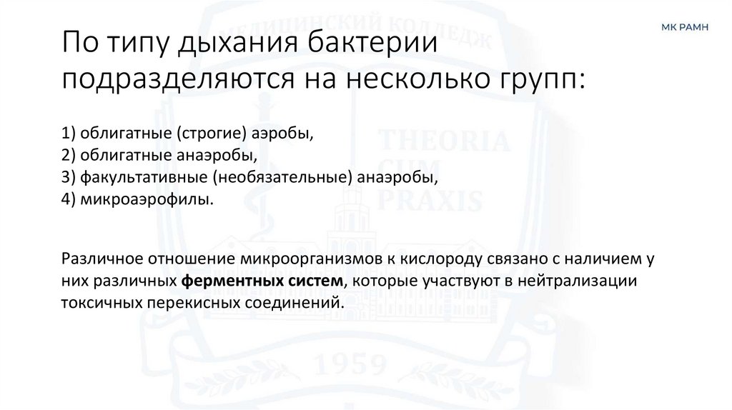 Различное отношение микроорганизмов к кислороду связано с наличием у