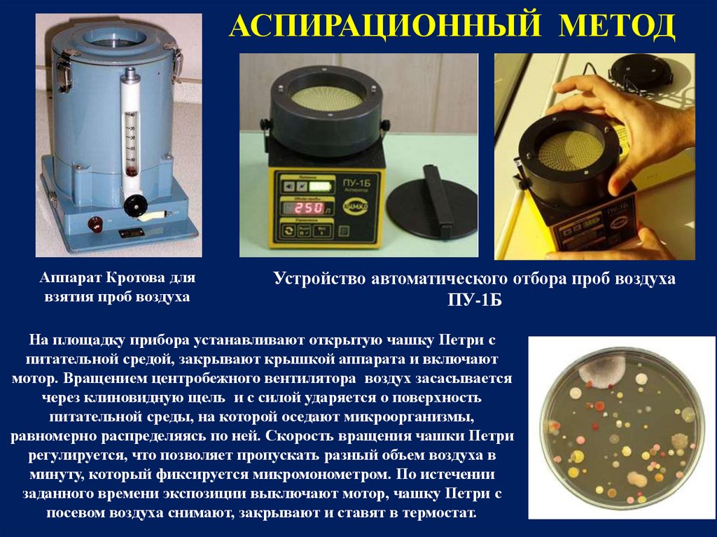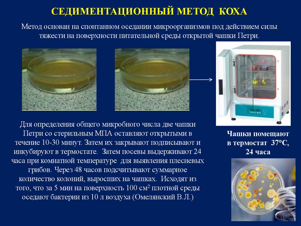 оседают бактерии из 10 л воздуха (Омелянский В.Л.)