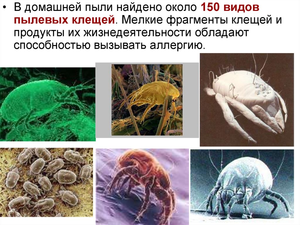 • В домашней пыли найдено около 150 видовпылевых клещей. Мелкие фрагменты клещей и
