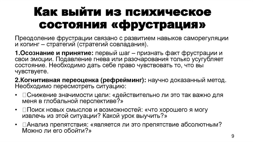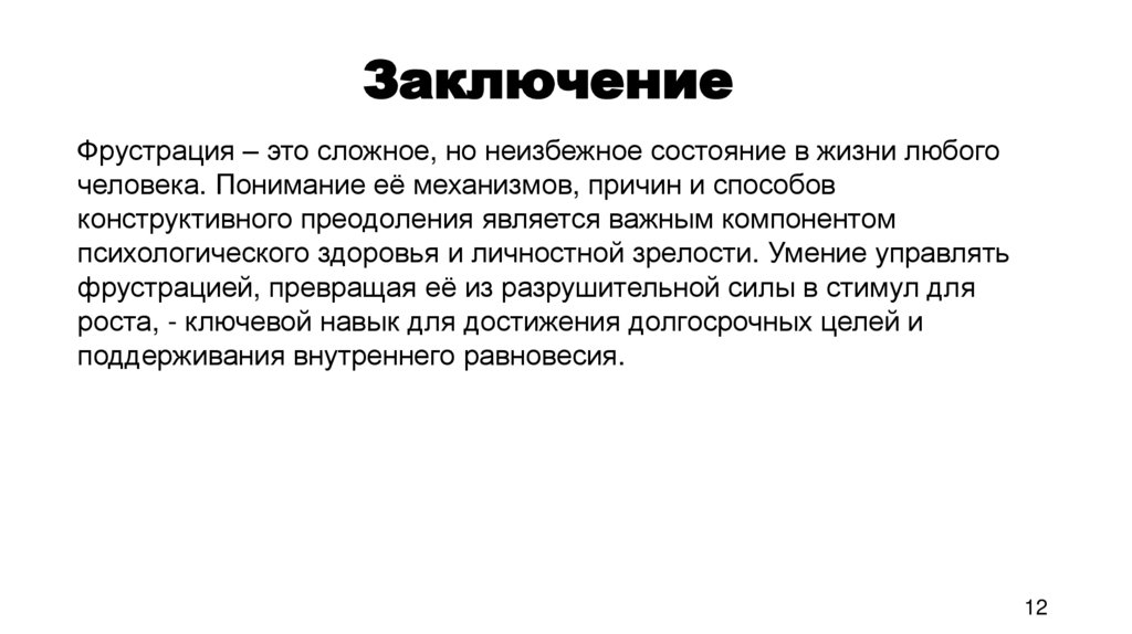 ЗаключениеФрустрация – это сложное, но неизбежное состояние в жизни любого
