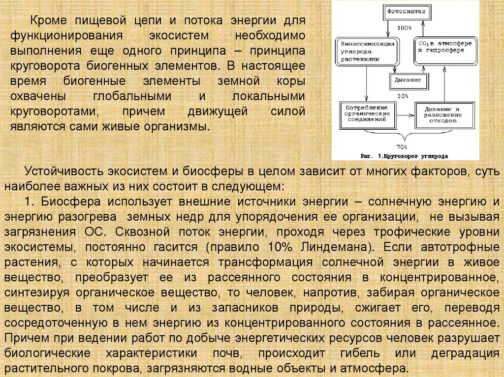 экосистемы, постоянно гасится (правило 10% Линдемана). Если автотрофные