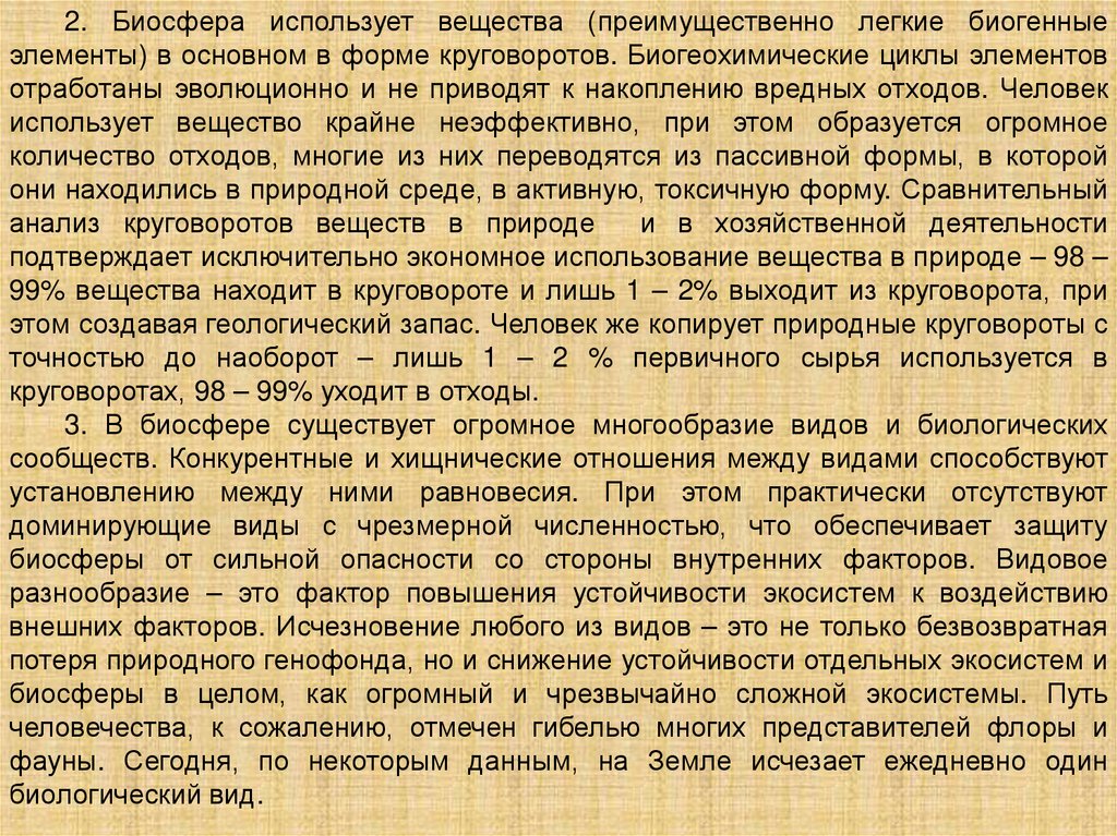 отработаны эволюционно и не приводят к накоплению вредных отходов. Человек