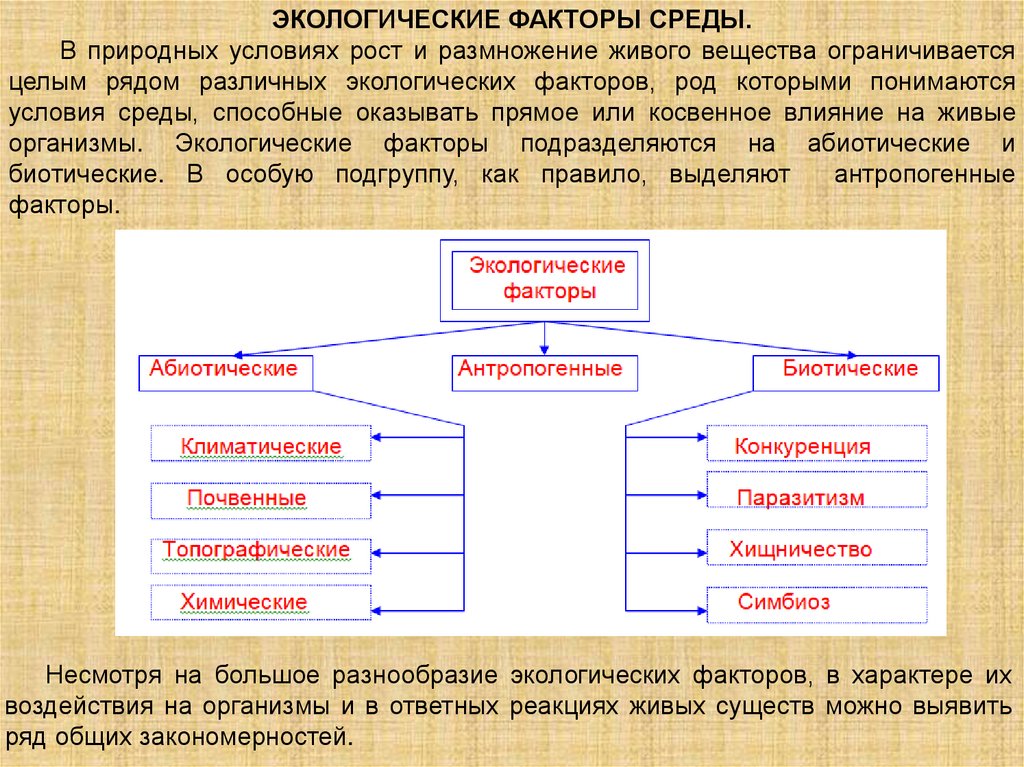 ЭКОЛОГИЧЕСКИЕ ФАКТОРЫ СРЕДЫ.В природных условиях рост и размножение живого вещества ограничивается