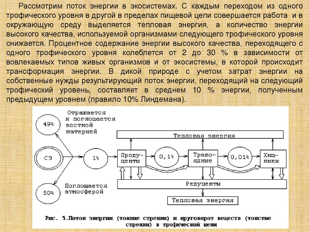 загрязнения ОС. Сквозной поток энергии, проходя через трофические уровни