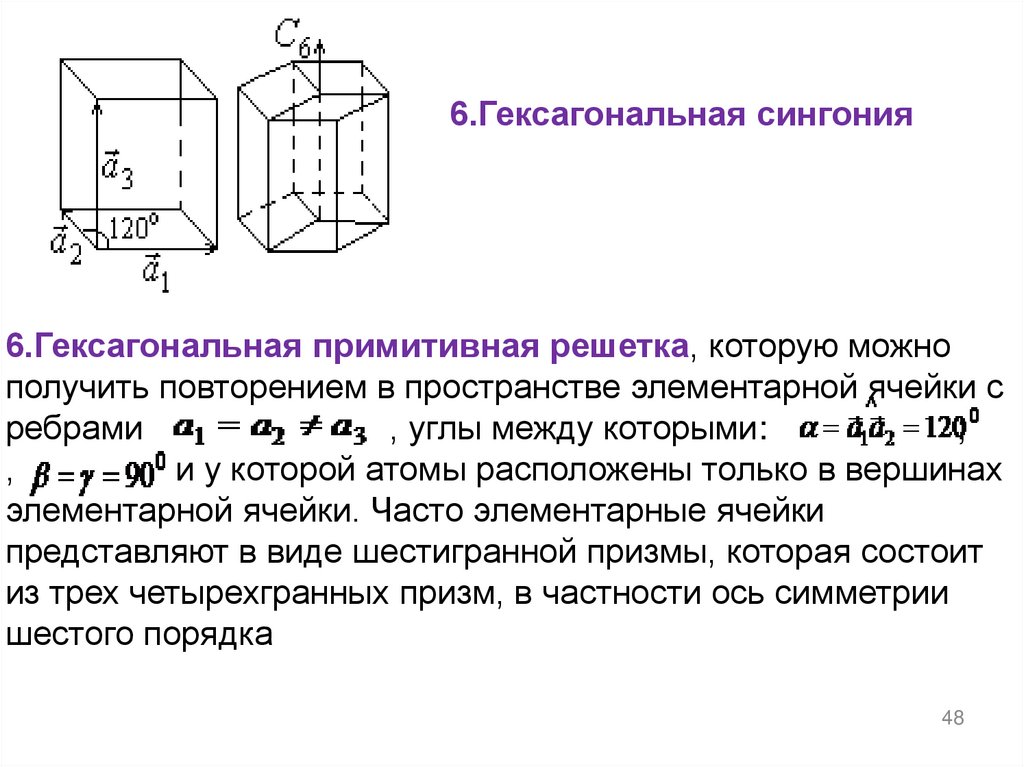 6.Гексагональная сингония6.Гексагональная примитивная решетка, которую можно